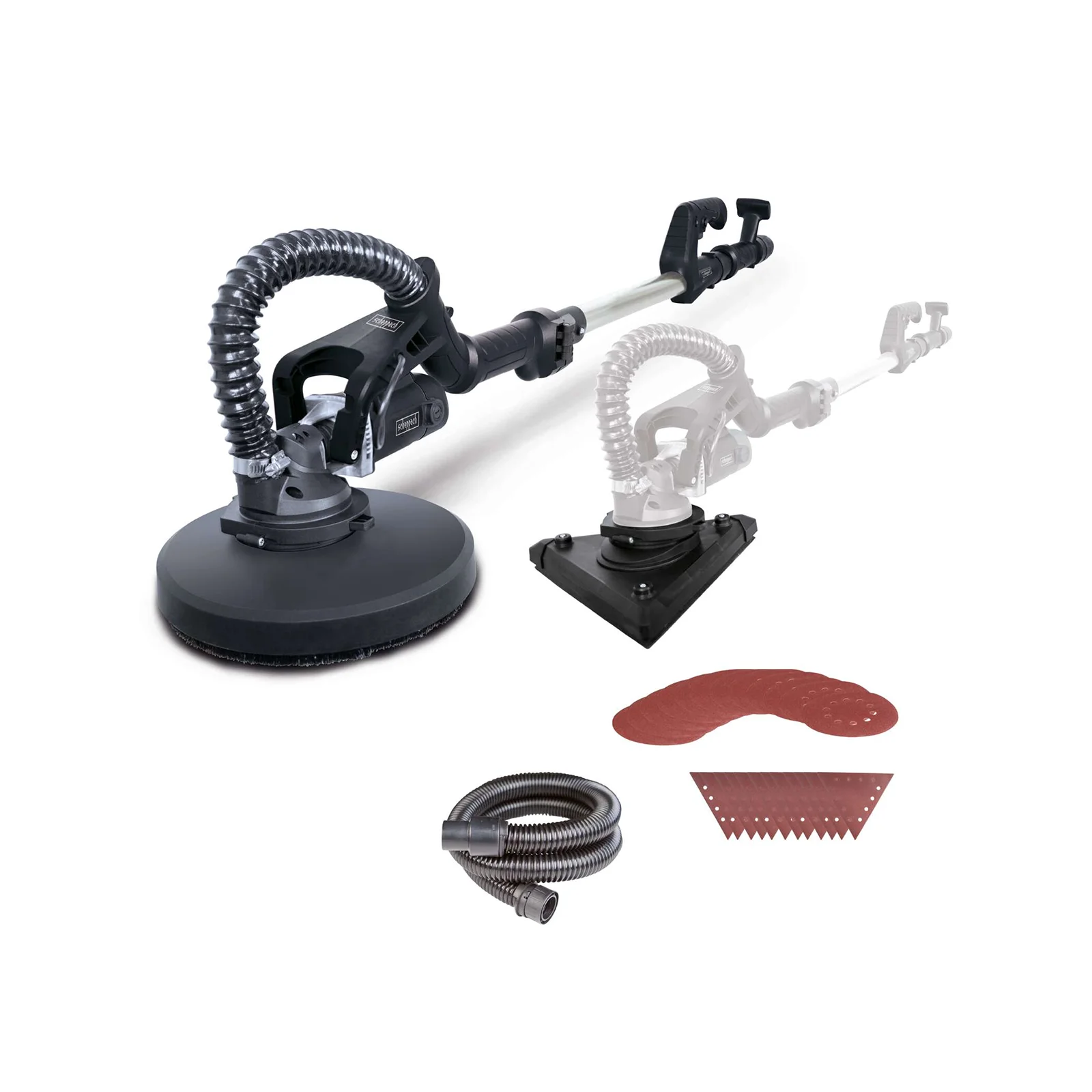 Brusilica za zidove TBS930-BE iz Scheppach-a pouzdano uklanja ostatke boje i tapeta sa plafona, kosih krovova i zidova. Praktična i lagana, sa teleskopskom drškom i dvije različite nagibne brusne glave, TBS930-BE olakšava rad iznad glave. Sa svojim bogatim priborom, brusilica s dugim dohvatom je savršen alat za gradilište.