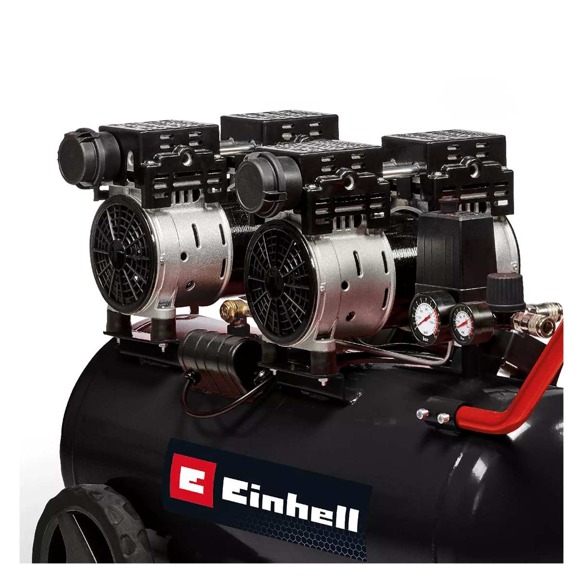 Einhell TE-AC 50 Silent je višenamenski tihi kompresor sa niskom nivoom buke od 54dB (LpA) i snagom od 1500 W. Kompresor je mnogo tiši od standardnih kompresora . Kompresori se mogu koristiti u radionici i garaži te za renoviranje i restauratorske radove, kao i za slobodne aktivnosti: Koristeći odgovarajuće alate koji idu uz to, možete brzo nanijeti lak i boju ili nanijeti ulje za zaštitu drveta selektivno ili na velikoj površini. Takođe možete obavljati poslove čišćenja izduvavanjem ili pjeskarenja u radionici. Tihi kompresor pokreće pumpa bez ulja i bez servisiranja za niske zahteve za održavanjem. Kotao od 50 litara pruža dovoljne rezerve vazduha za velike radne zadatke. Postoji reduktor pritiska do 8 bar. Za jednostavno održavanje kompresor ima vijak za ispust kondenzacije u sudu. U kompletu s manometrom i spojkom za brzo otpuštanje za kontrolisani pritisak i za neregulisani. Sigurnosni ventil osigurava visok nivo sigurnosti korisnika. Veliki točkovi i transportna šipka olakšavaju transport. Čvrst i siguran položaj za stajanje tokom upotrebe osiguravaju noge koje prigušuju vibracije. Einhell je uveren u kvalitet i obezbeđuje 10-godišnju garanciju na perforaciju korozije za rezervoar.