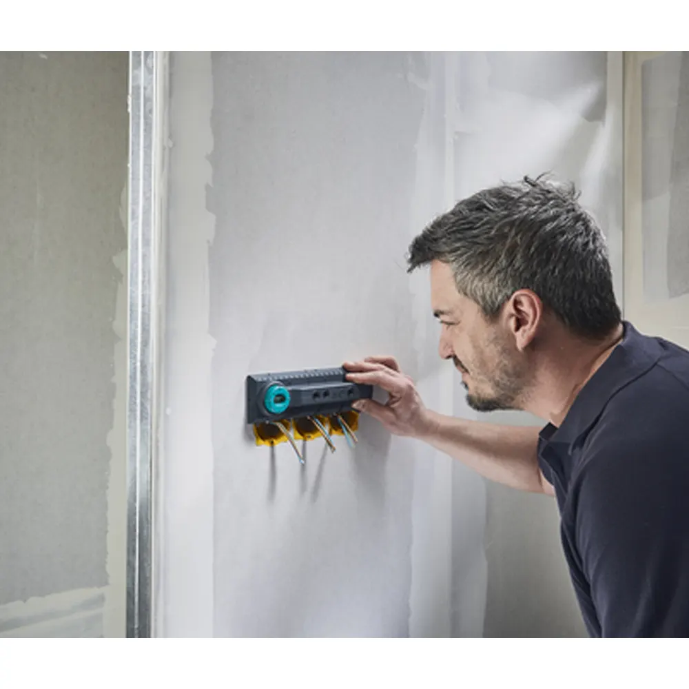 • Šablon za označavanje, poravnanje i bušenje za brzu i besprijekornu ugradnju električnih instalacijskih kutija i pripadajućih umetaka u zidove od opeke i gipsane ploče