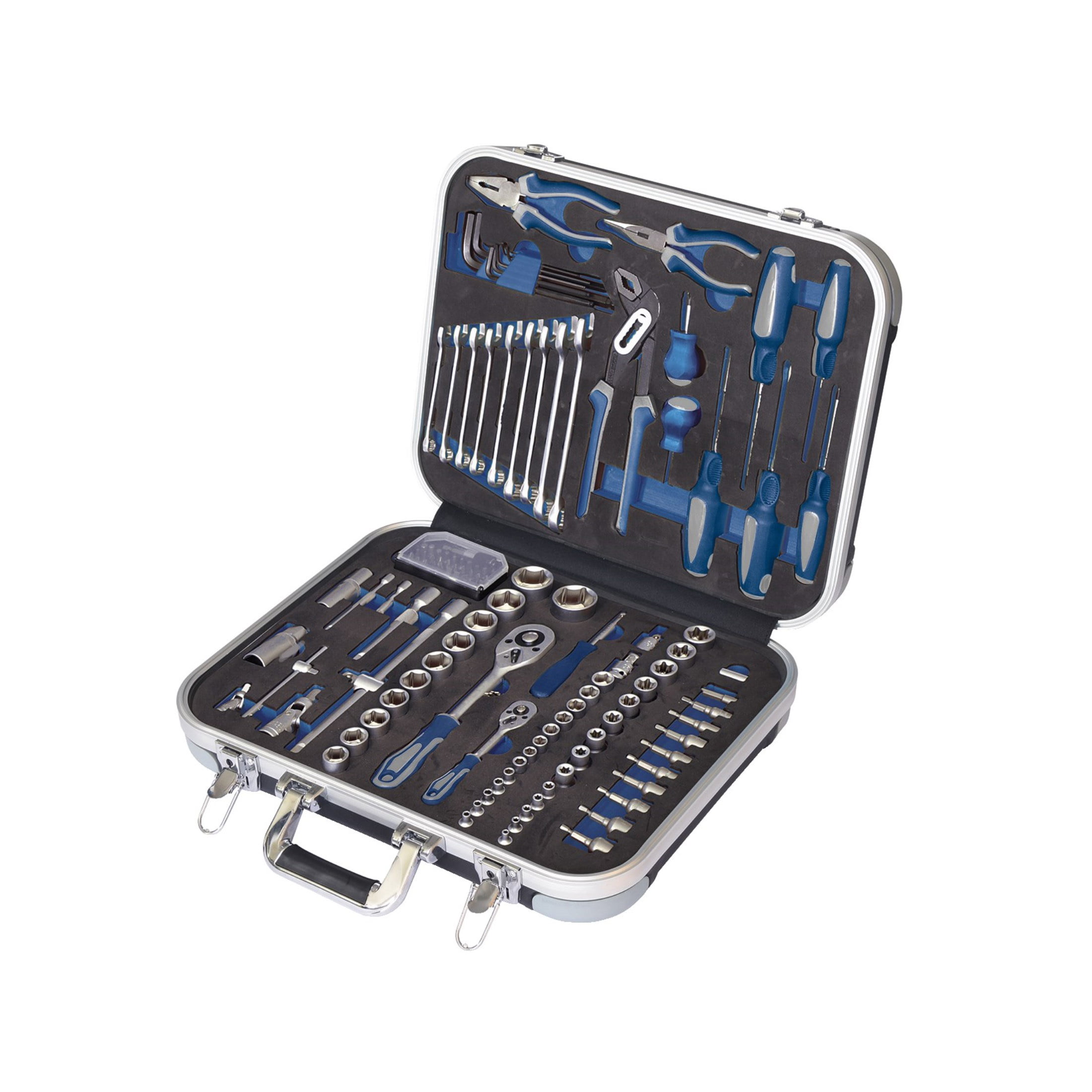 Opsežno opremljen visokokvalitetnim alatima izrađenim od krom-vanadijevog čelika, visokokvalitetnim aluminijskim kućištem s robusnim sistemom zaključavanja, sistemom za uredno skladištenje i odlaganje alata