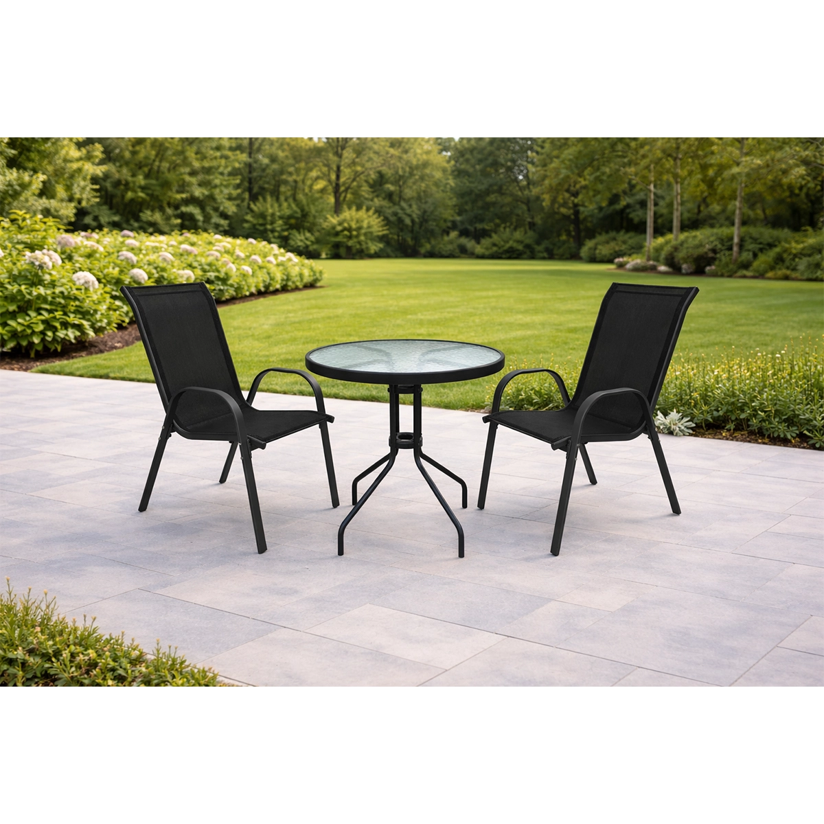 Set se sastoji od stola dimenzija 60 x 70  cm sa providnim staklom i 2 stolice 54 x72 x 90 cm
