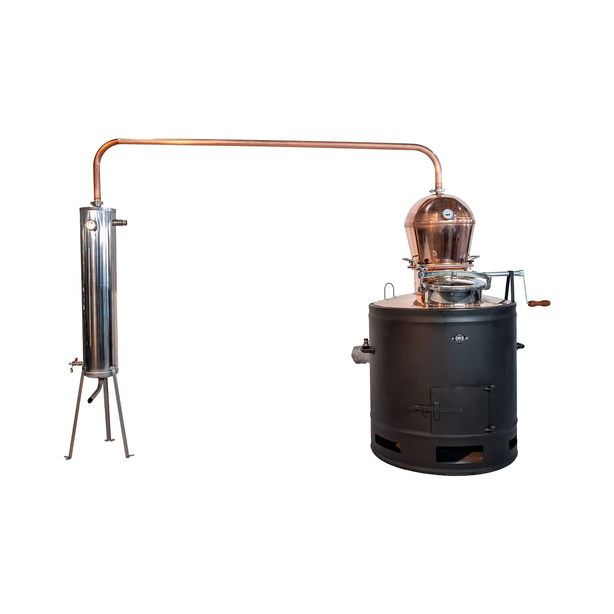 Modeli kazana STABILNI su uređaji za destilaciju voćnih alkoholnih pića velikog kapaciteta namenjeni individualnoj industrijskoj upotrebi. Set kazana za destilaciju alkoholnih pića se sastoji od bakarnog kotla sa mehaničkom ručnom mešalicom ugrađenog u ložište koje je izrađeno od hladno-valjanog lima. Za ulivni otvor na ovom kazanu ugrađena su manhole vrata Inox AISI 304 (300x200mm). Za pražnjenje uređaja postavljen je mesingani kuglični ventil 3″. Kazan i kalpak su spojeni pomoću prohromske prirubnice debljine 4mm i dihtunga debljine 5mm. Spoj kazana i hladnjaka sa spojnom cevi vrđi se pomoću 3klamp sistema gde se nalazi silikonski dihtung 2mm. Svi delovi uređaja koji dolaze u kontakt sa fermentisanom voćnom masom, parom ili samim destilatom, su izrađeni od najkvalitetnijeg elektrolitičkog bakra. Bakar je jedan od najboljih provodnika toplote, otporan na dejstvo organskih kiselina i veoma dobro utiče na ukus i miris destilata, dokazano, bolje od bilo kog drugog metala. Iz tog razloga su destilati (rakije) dobijeni u kazanima od bakra čistijeg mirisa i ukusa. Kazani su pogodni za pravljenje različitih destilata. Njegova osnovna namena jeste proizvodnja rakije, ali na njemu takođe možete proizvoditi vrhunski džin, viski, vodku, rum…