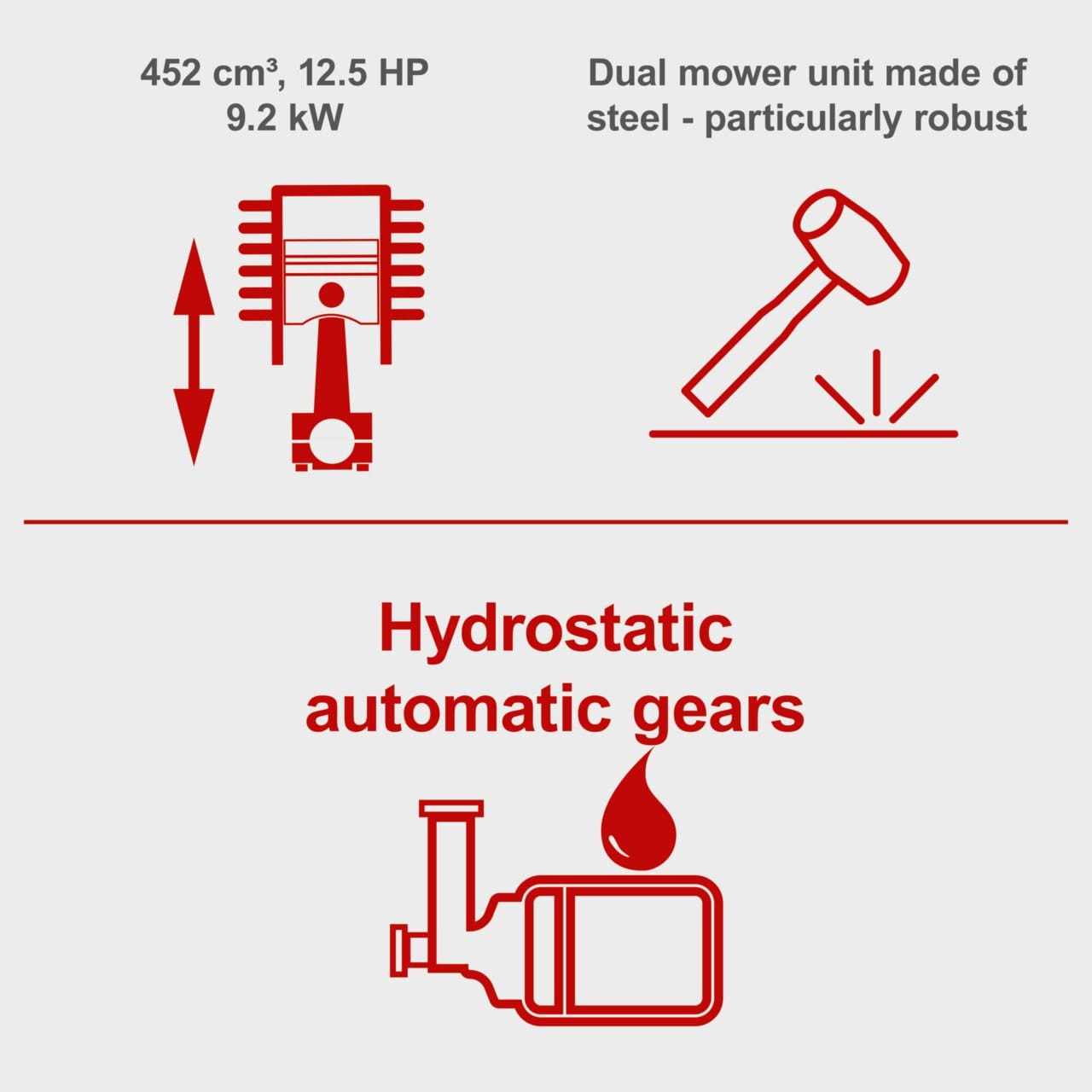 • Snažan 4-taktni motor od 452 cm3 od 12.5 KS