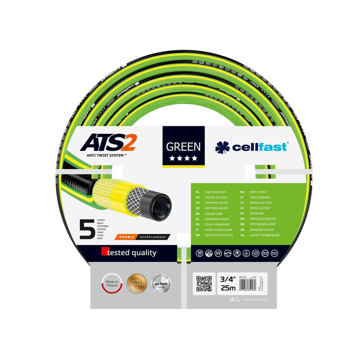 Baštensko crijevo Green ATS2 3/4″ dužine 25 m, pogodno za sve sezone. Unakrsno pleteno.